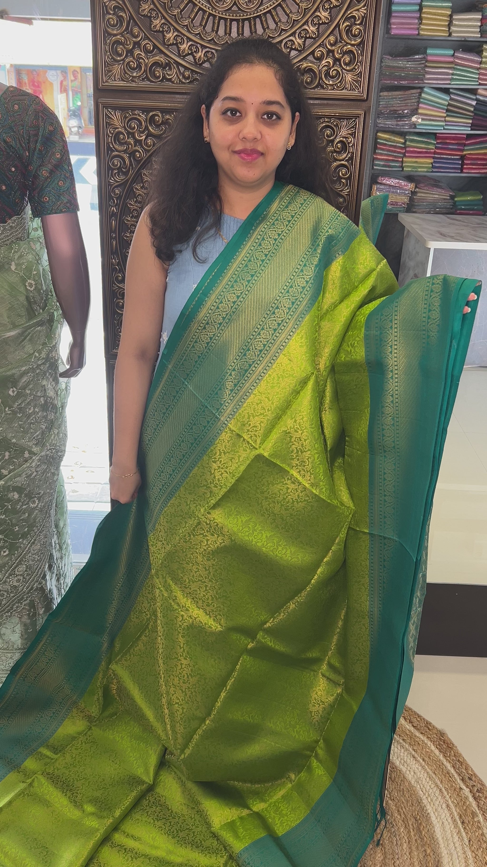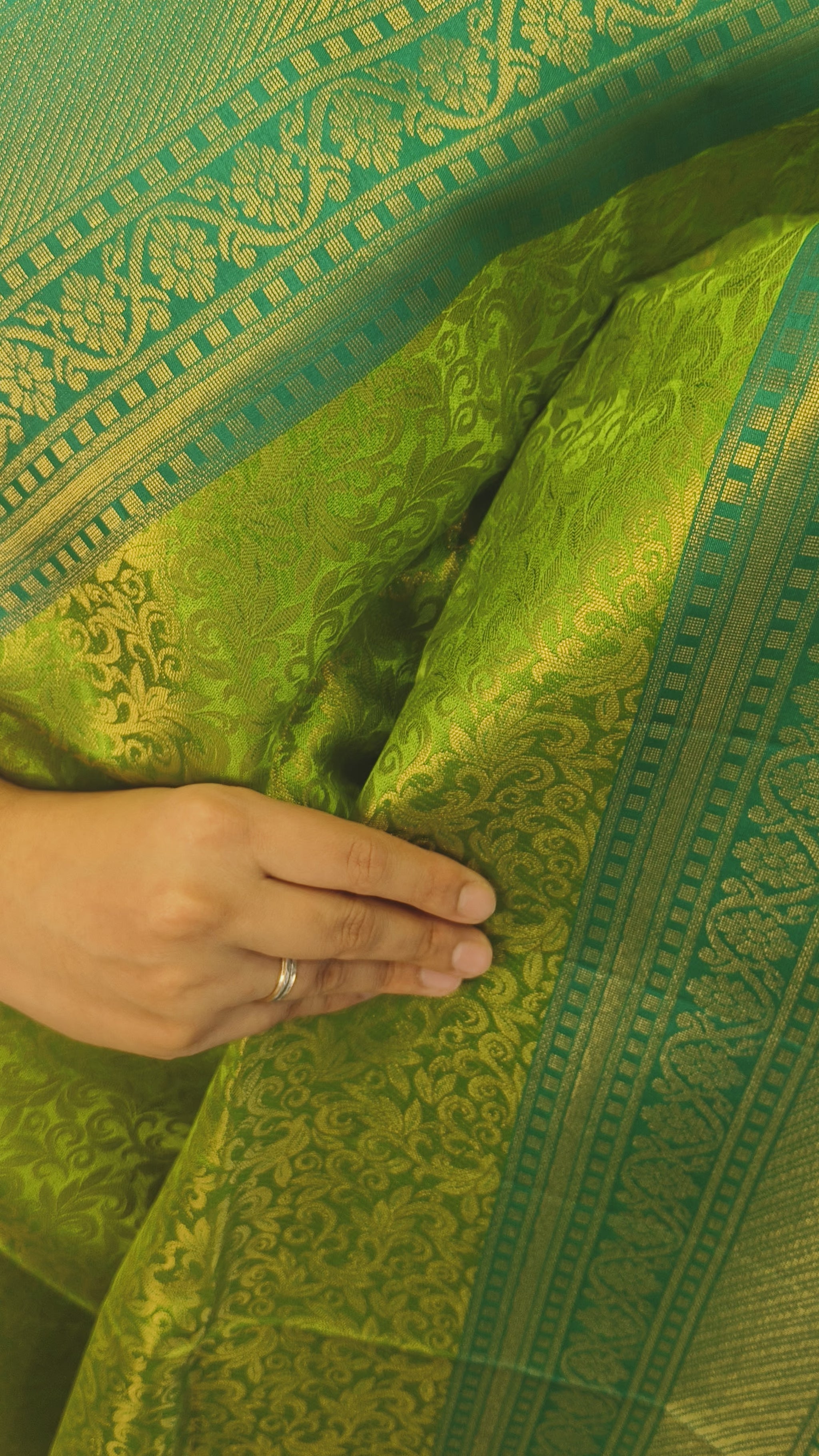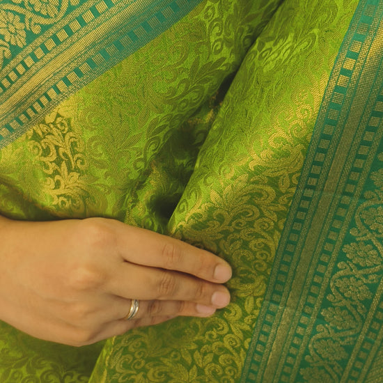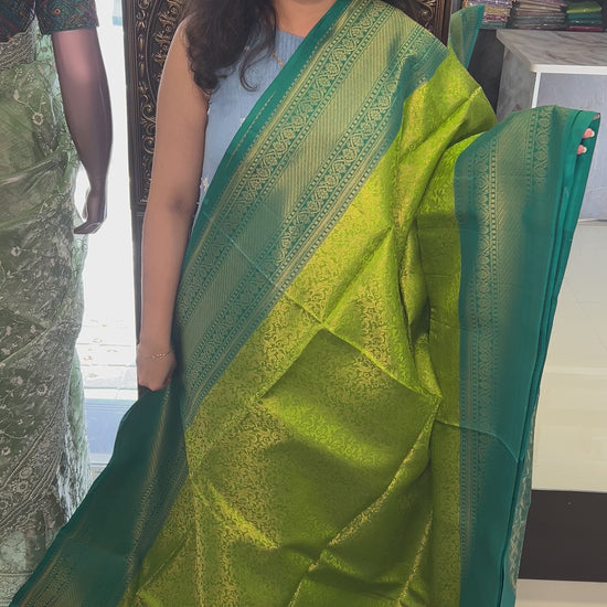 Regal Green with Dark Teal Pure Soft Silk Saree